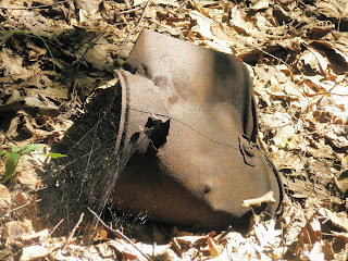 The next day, we headed west from the hamlet of West Taghkanic on Route 82, where we parked near New Forge Road and headed into a pathless woods a couple miles north of the state park. As we proceeded to ascend a steep ravine, we found three level spots that could have been the locations of cabins and small gardens long ago, but there was little evidence of human habitation beyond some stone walls and a rusted pail.