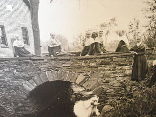 Women of the Shaker community on the bridge in the Watervliet settlement